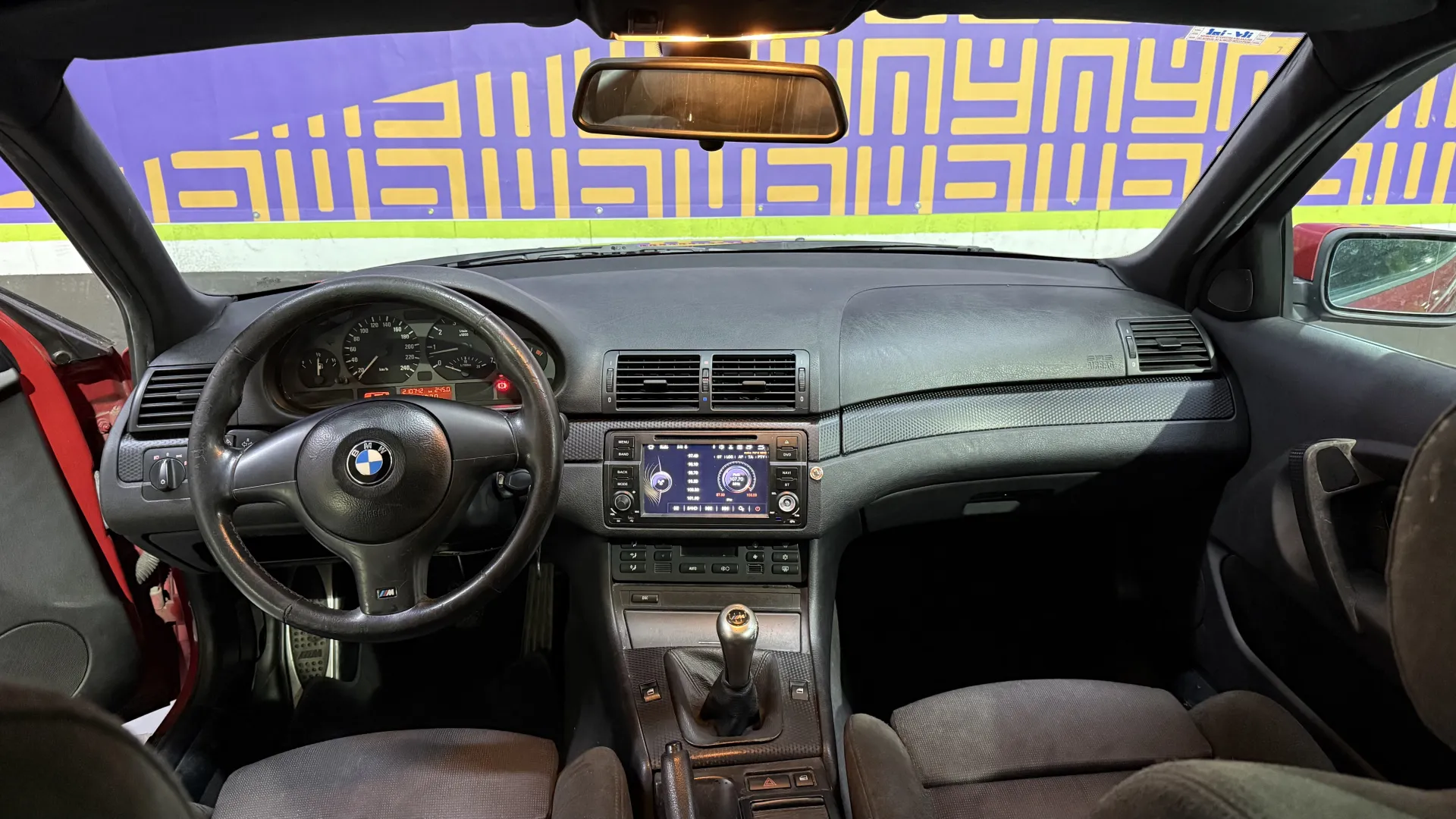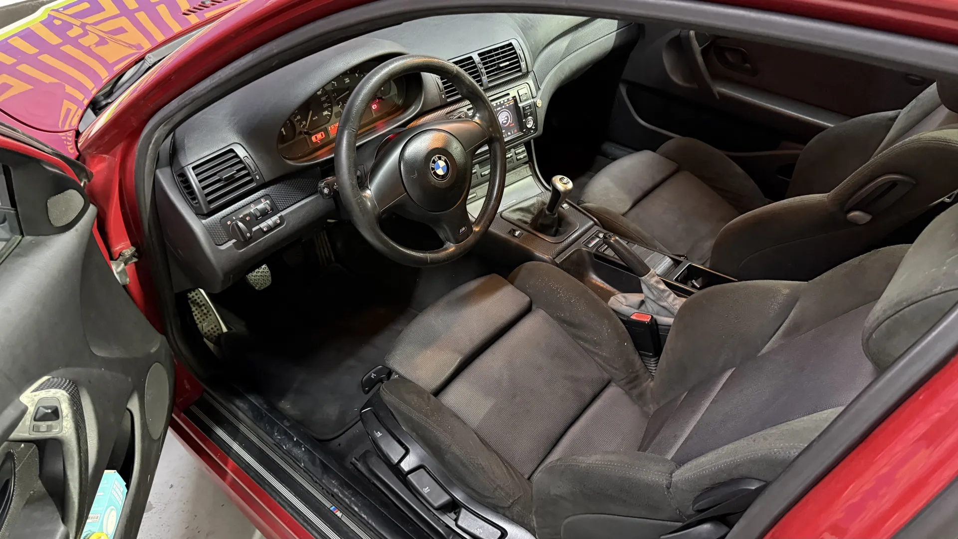 Habitáculo M: Volante deportivo de cuero con tres radios, pomo de cambio corto M y guarnecido del techo en color Antracita (negro).
